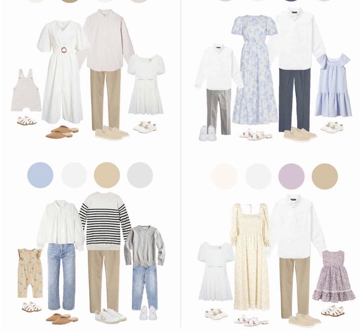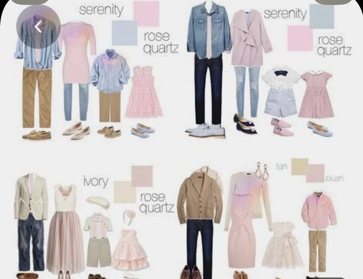 Para una sesión de familia o de pareja, funciona muy bien esteticamente, si todos están con prendas de la misma gama tonal, o combinando 2 tonos, no significo que vengan los todos vestidos del mismo color, si no jugar con los colores. Mejor colores sólidos o neutros, ya que queda más armonioso visualmente.